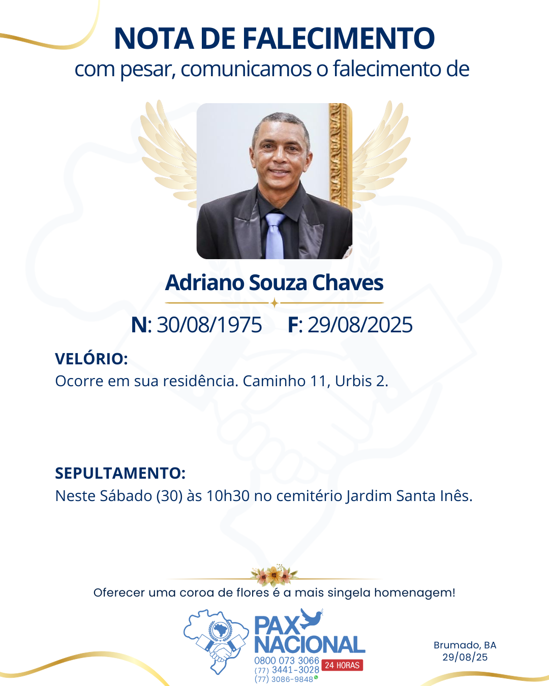Vá em paz meu irmão, que nosso pai celestial o receba em seus braços, saudades eternas…