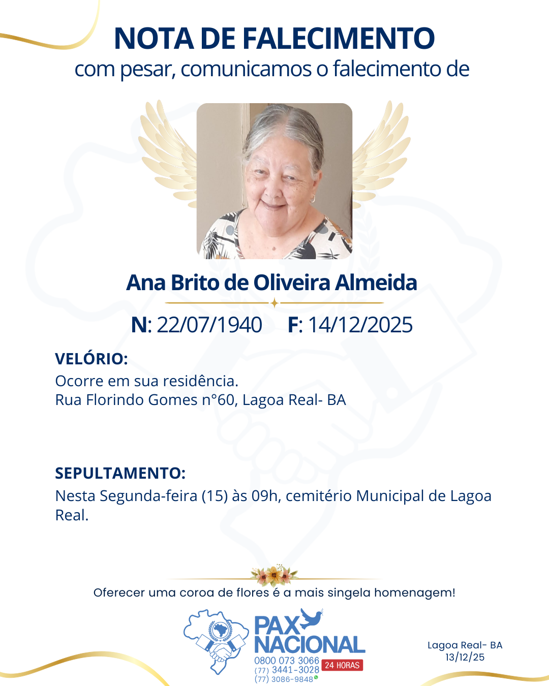 Deixe aqui a sua homenagem aos familiares deste óbito.