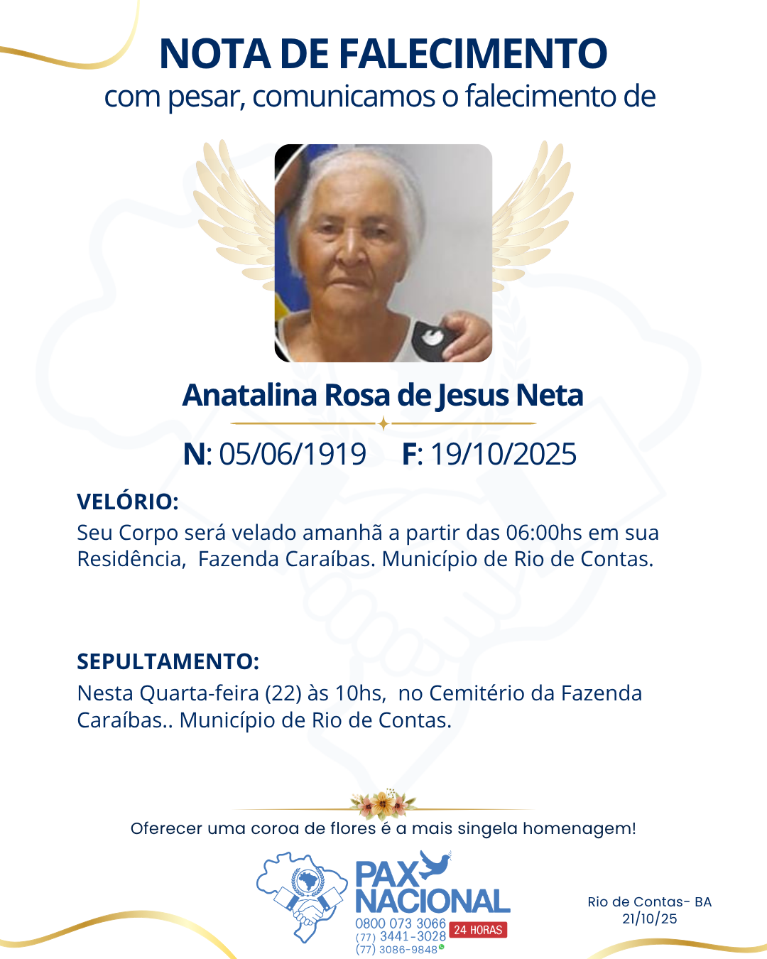 Deixe aqui a sua homenagem aos familiares deste óbito.