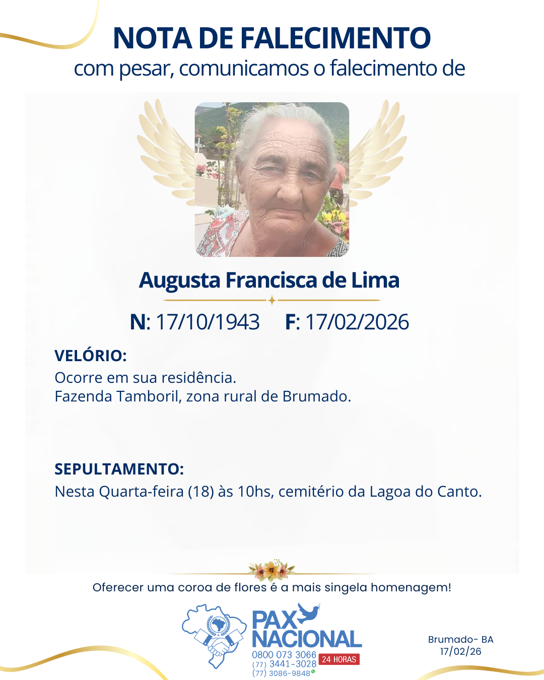 Deixe aqui a sua homenagem aos familiares deste óbito.