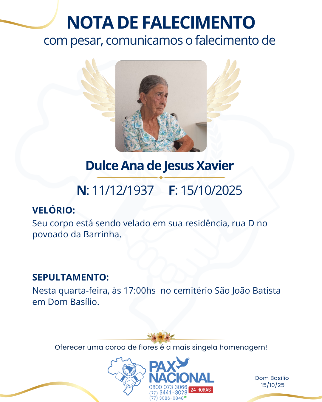 Com pesar, comunicamos o falecimento de