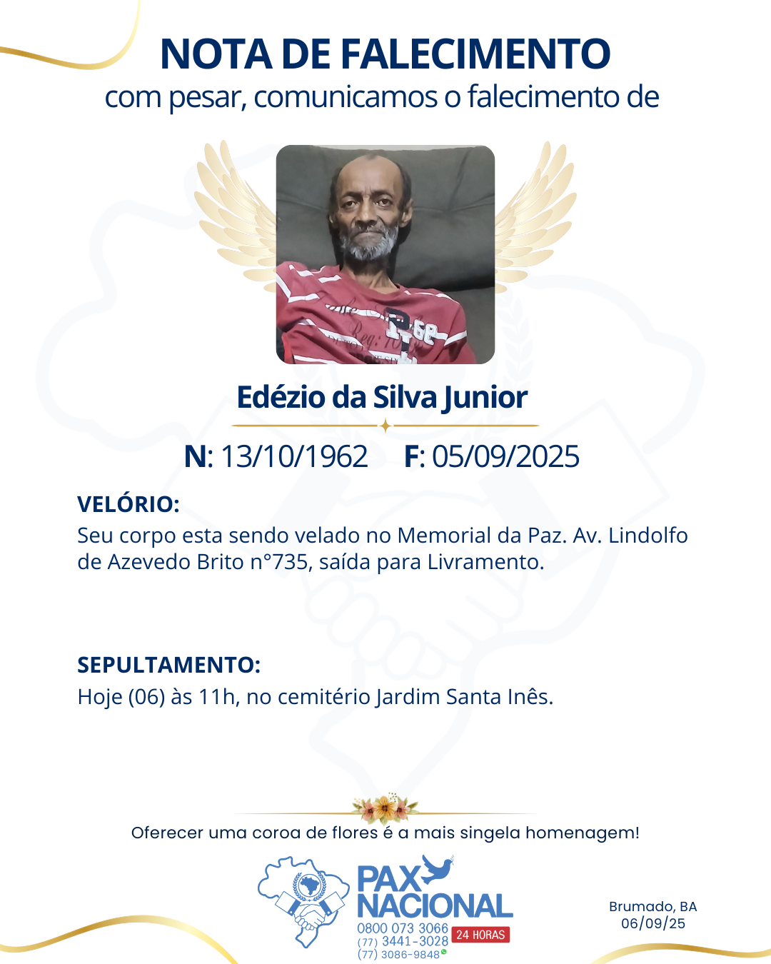 Com pesar, comunicamos o falecimento de