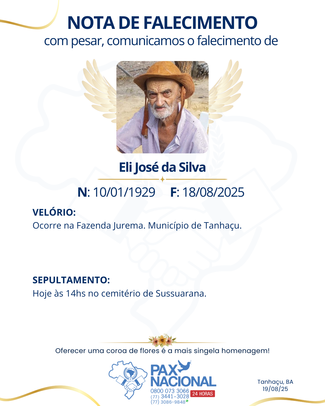 Com pesar, comunicamos o falecimento de