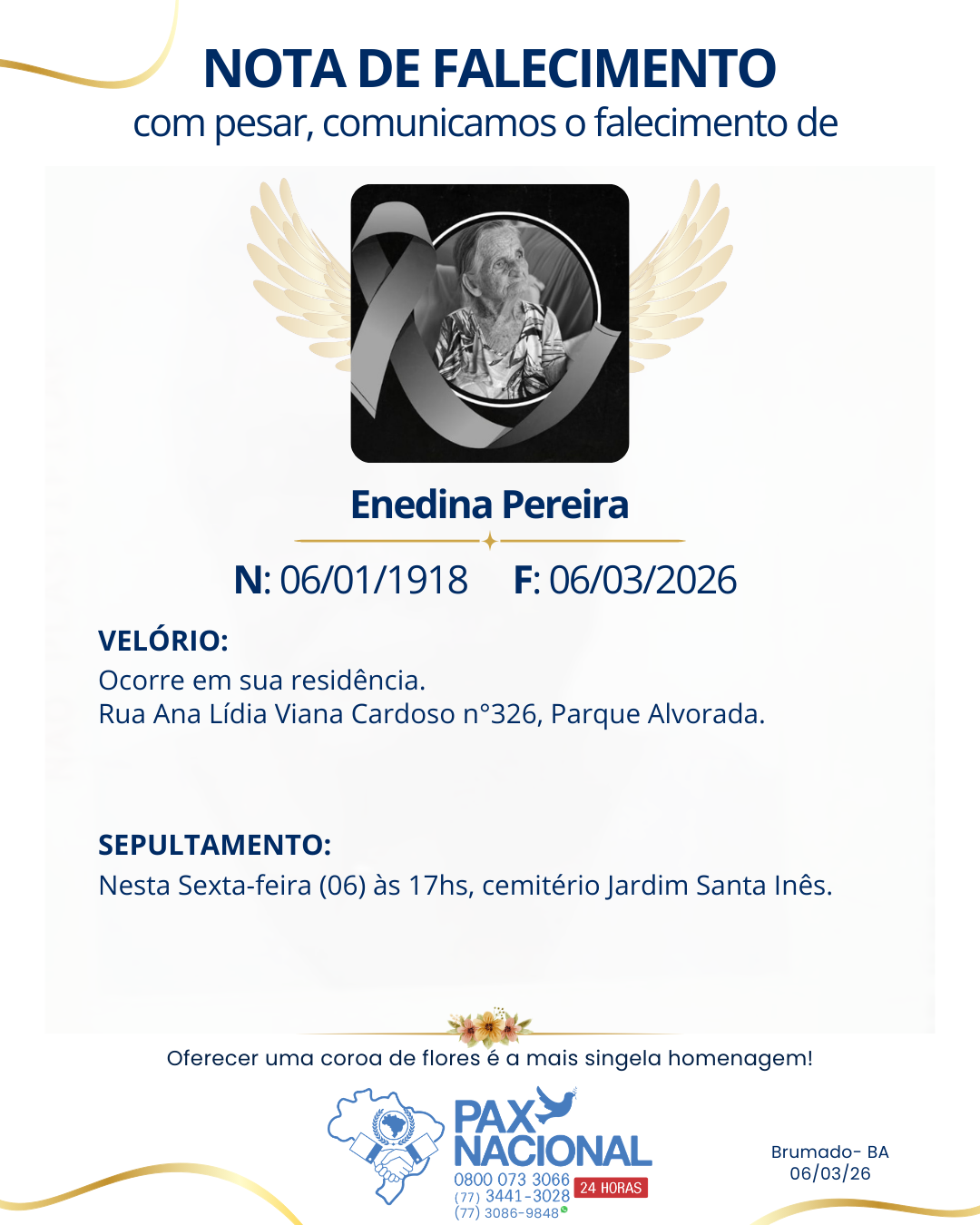 Deixe aqui a sua homenagem aos familiares deste óbito.