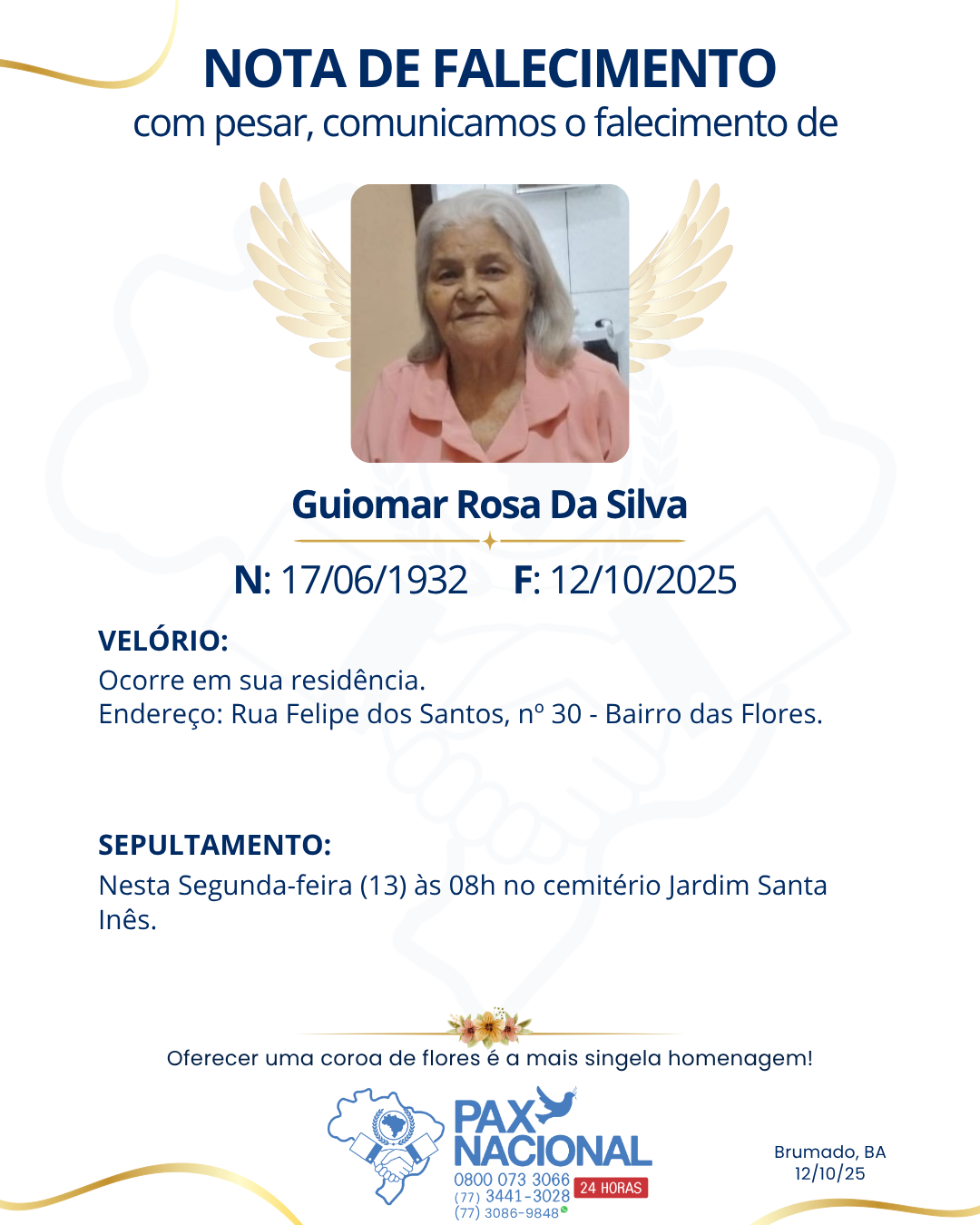 Deixe aqui a sua homenagem aos familiares deste óbito.