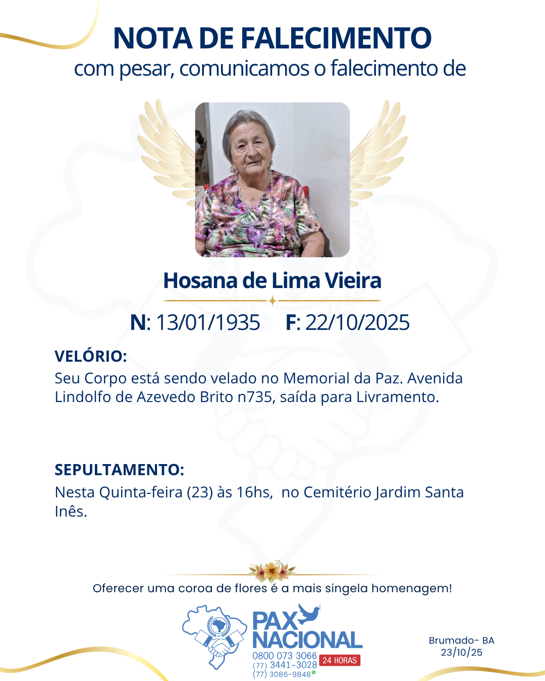 Com pesar, comunicamos o falecimento de