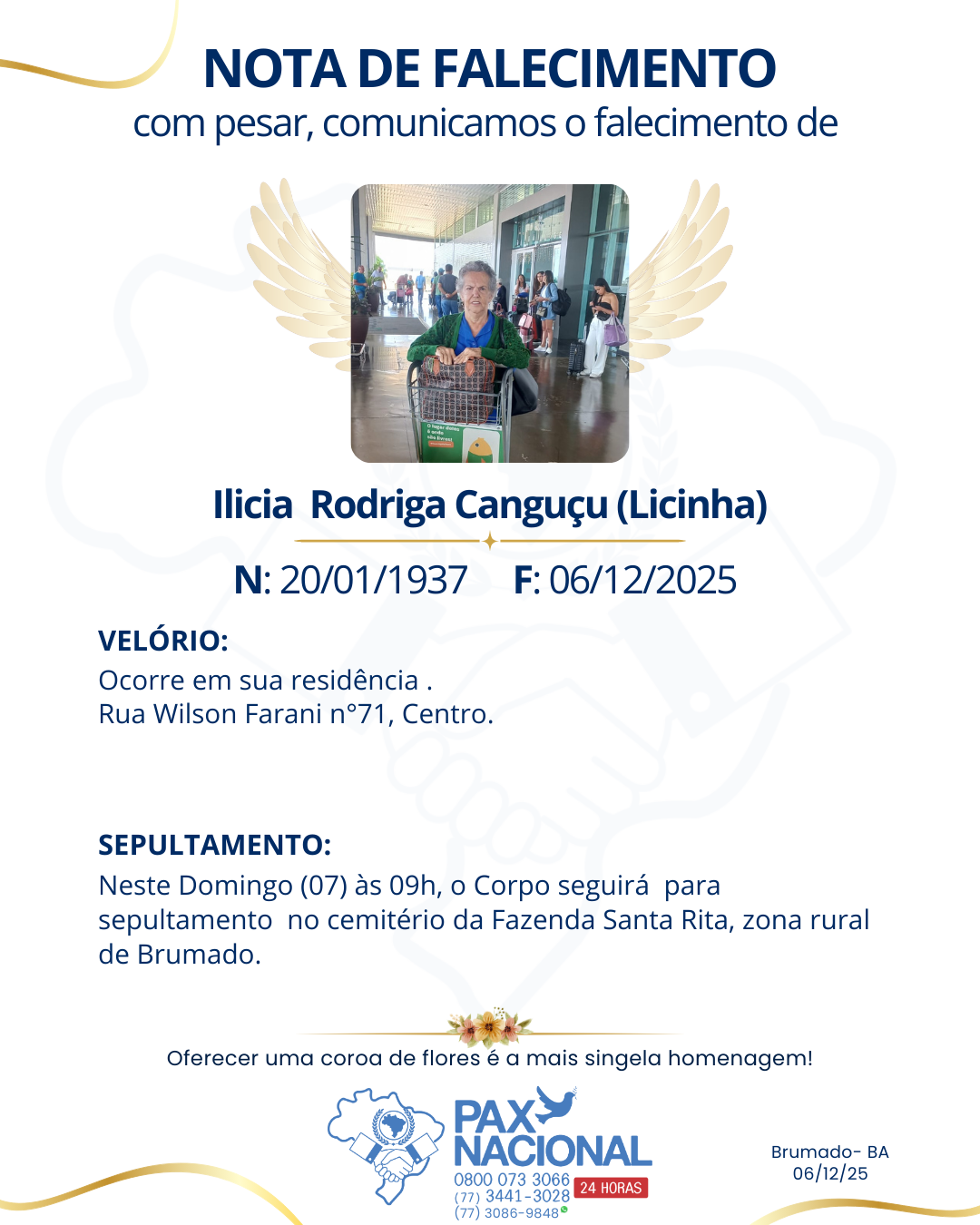 Deixe aqui a sua homenagem aos familiares deste óbito.