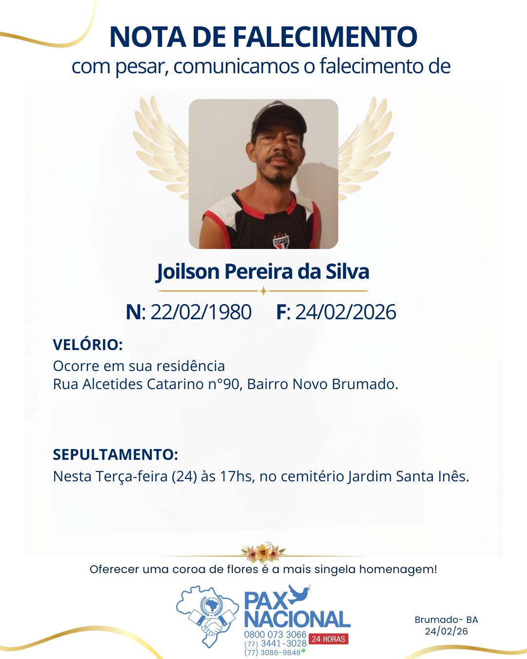 Deixe aqui a sua homenagem aos familiares deste óbito.