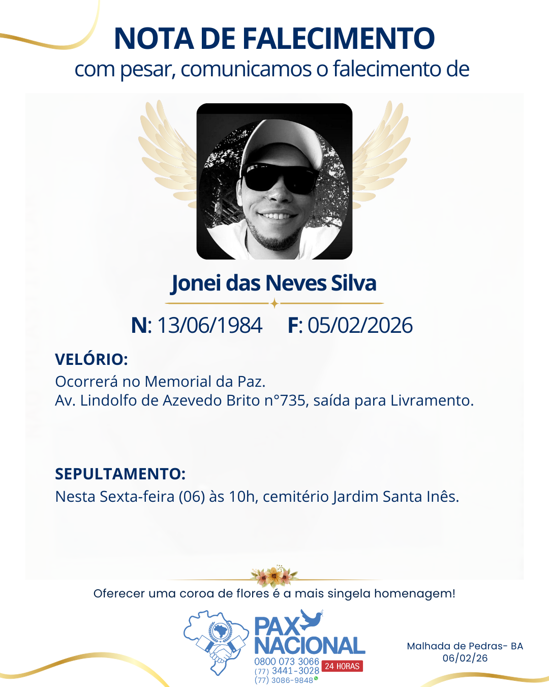 Deixe aqui a sua homenagem aos familiares deste óbito.