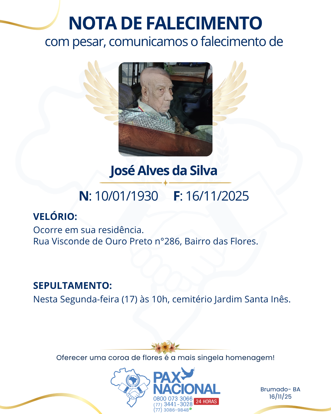 Deixe aqui a sua homenagem aos familiares deste óbito.