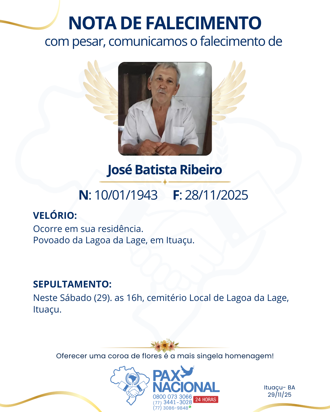 Deixe aqui a sua homenagem aos familiares deste óbito.