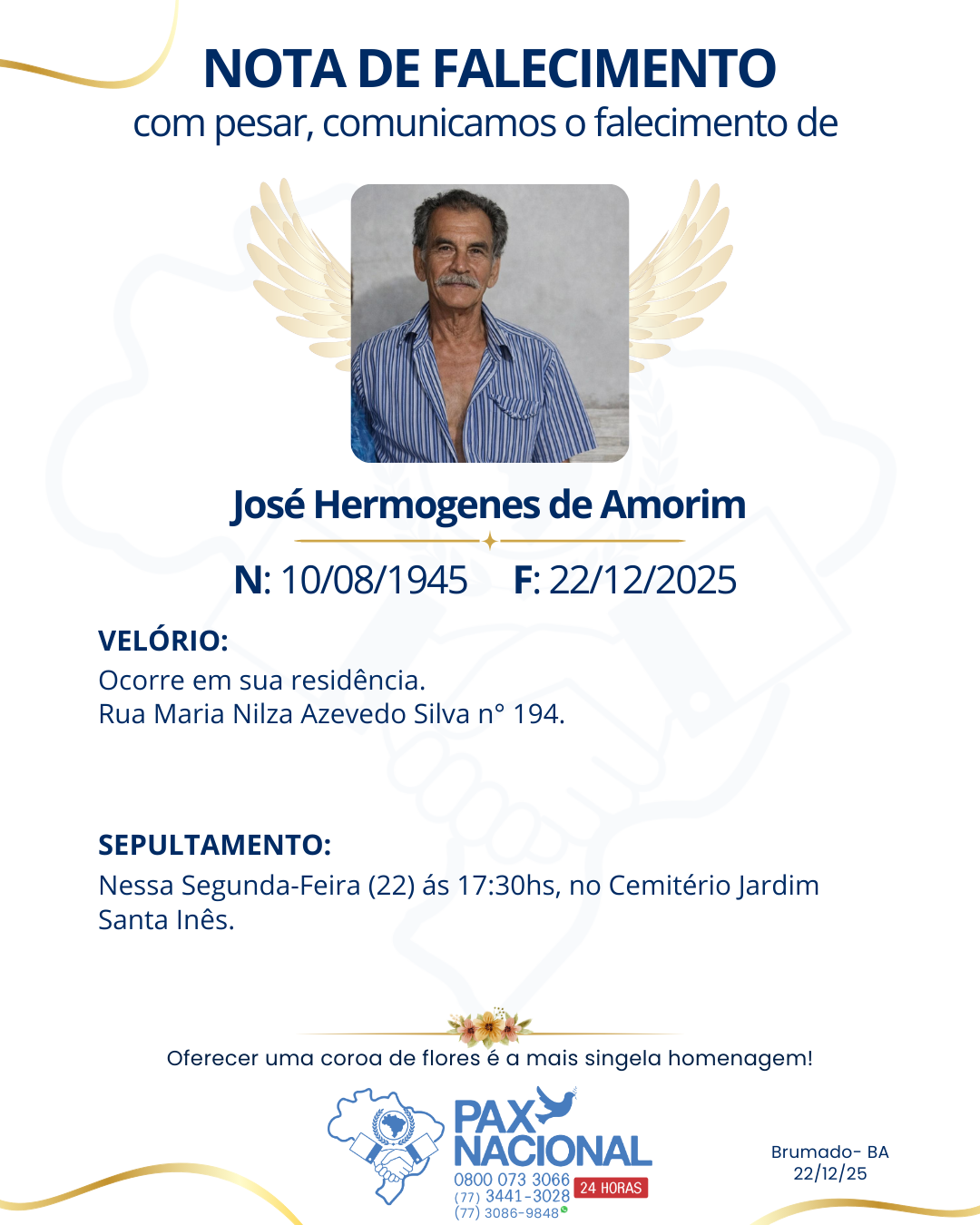 Deixe aqui a sua homenagem aos familiares deste óbito.