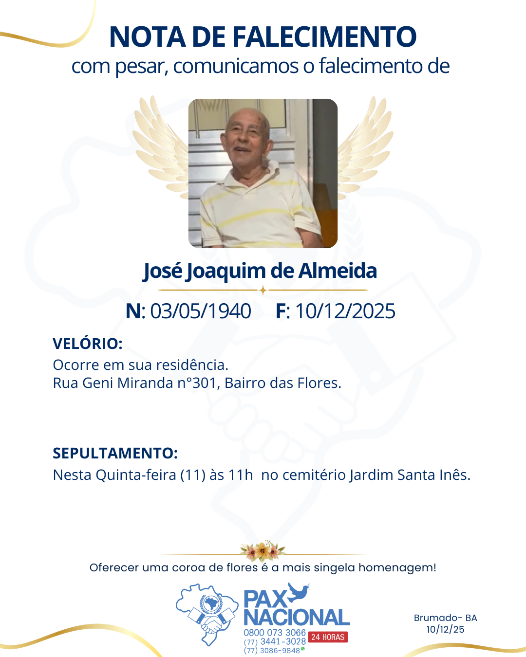 Com pesar, comunicamos o falecimento de