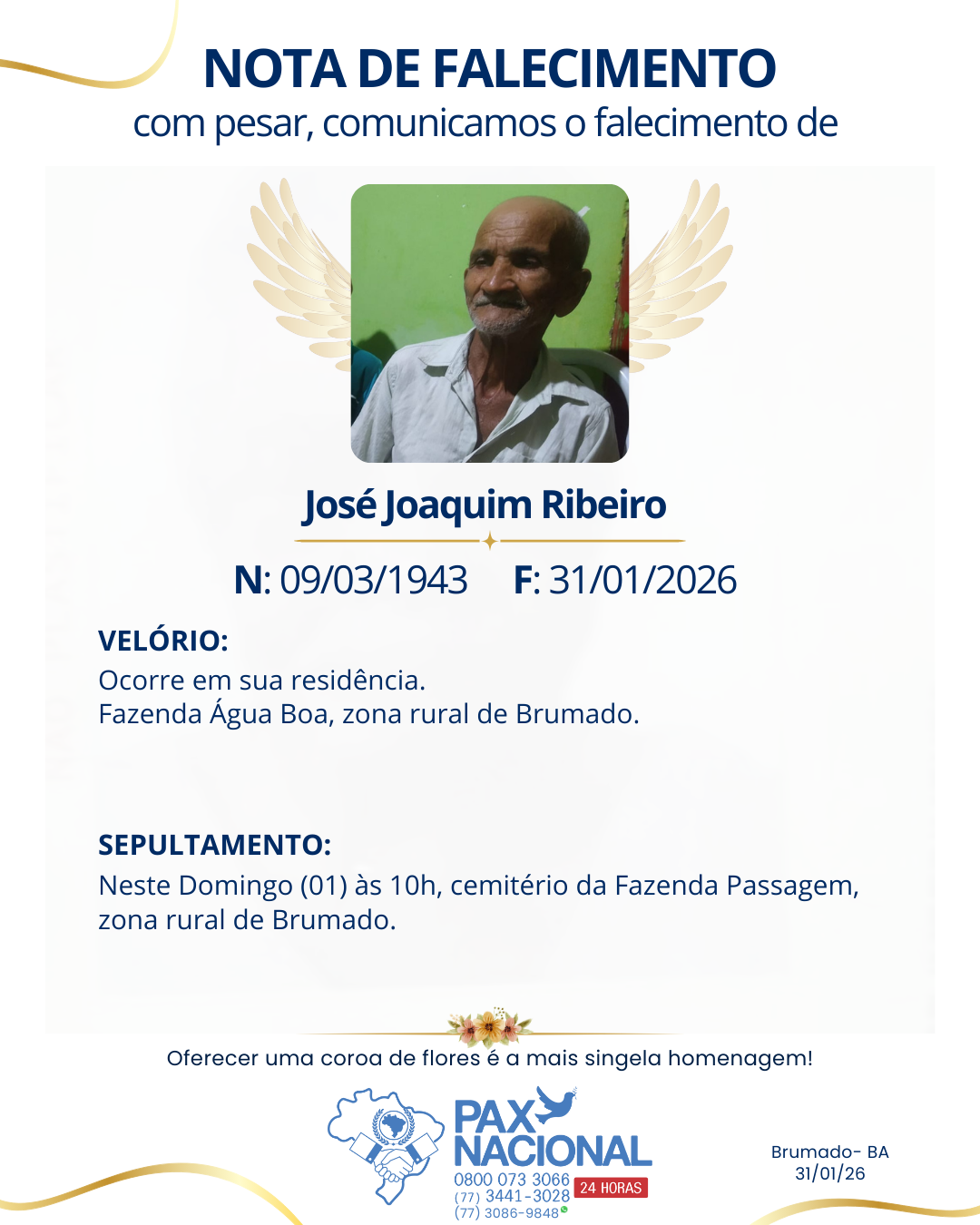 Deixe aqui a sua homenagem aos familiares deste óbito.