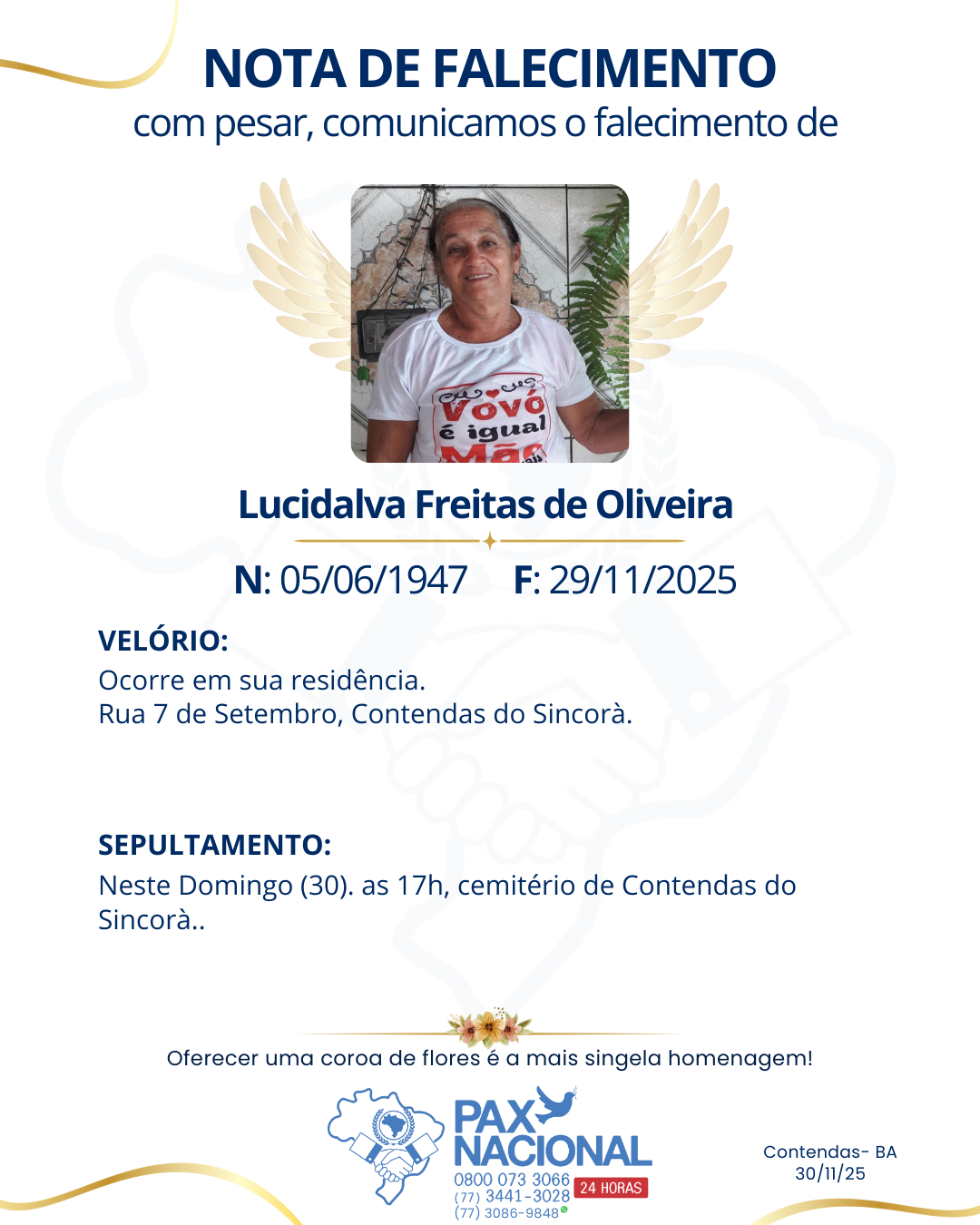 Deixe aqui a sua homenagem aos familiares deste óbito.