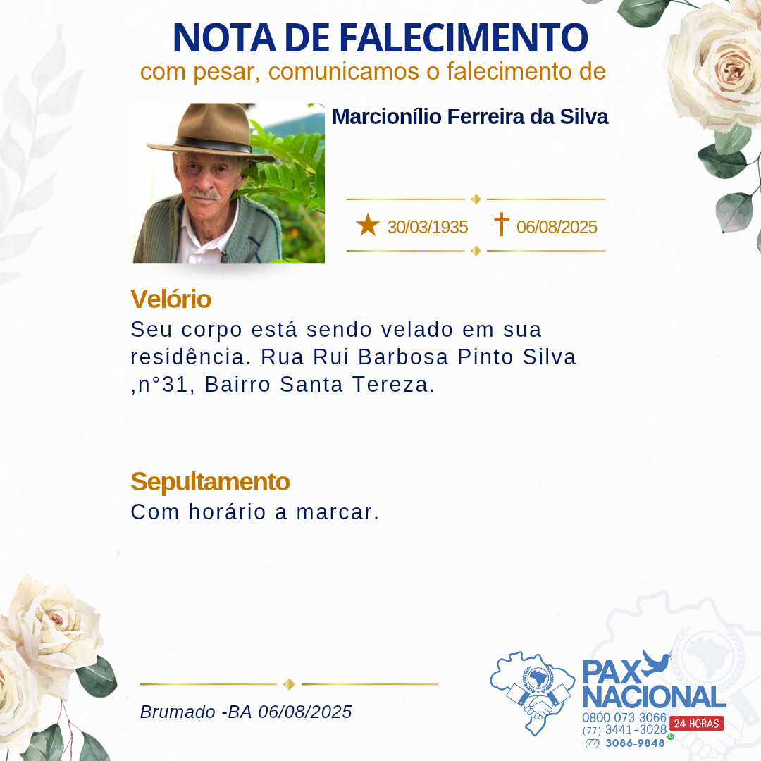 Obrigado seu Massu por tudo nesta vida , pelo pai que o senhor foi ,sogro e avô dos meus filhos lembraremos eternamente do senhor.