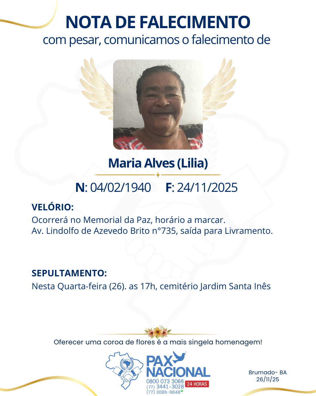 Deixe aqui a sua homenagem aos familiares deste óbito.