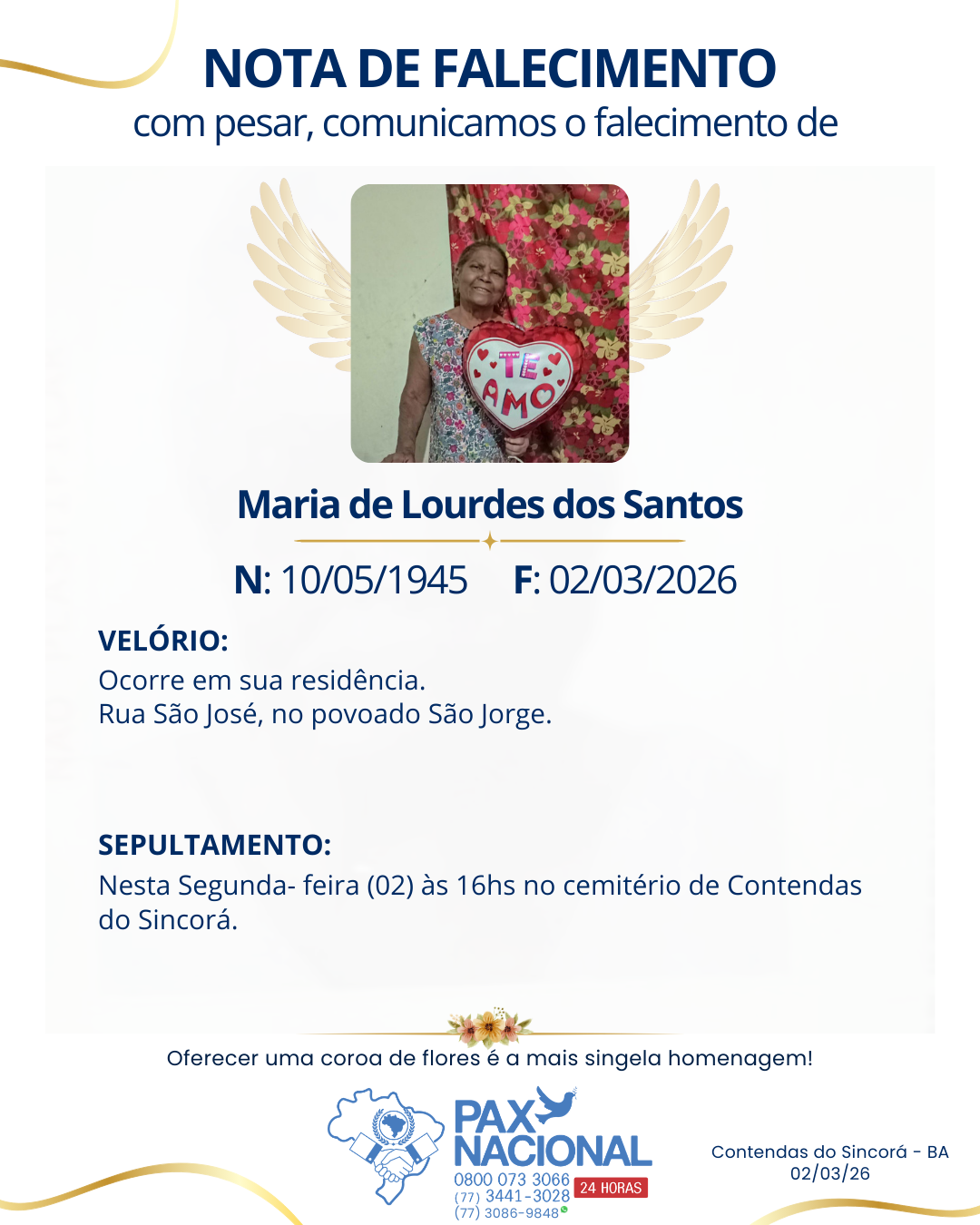 Deixe aqui a sua homenagem aos familiares deste óbito.