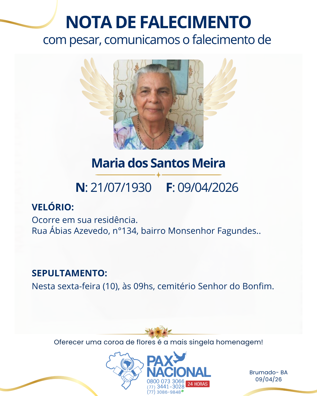 Deixe aqui a sua homenagem aos familiares deste óbito.