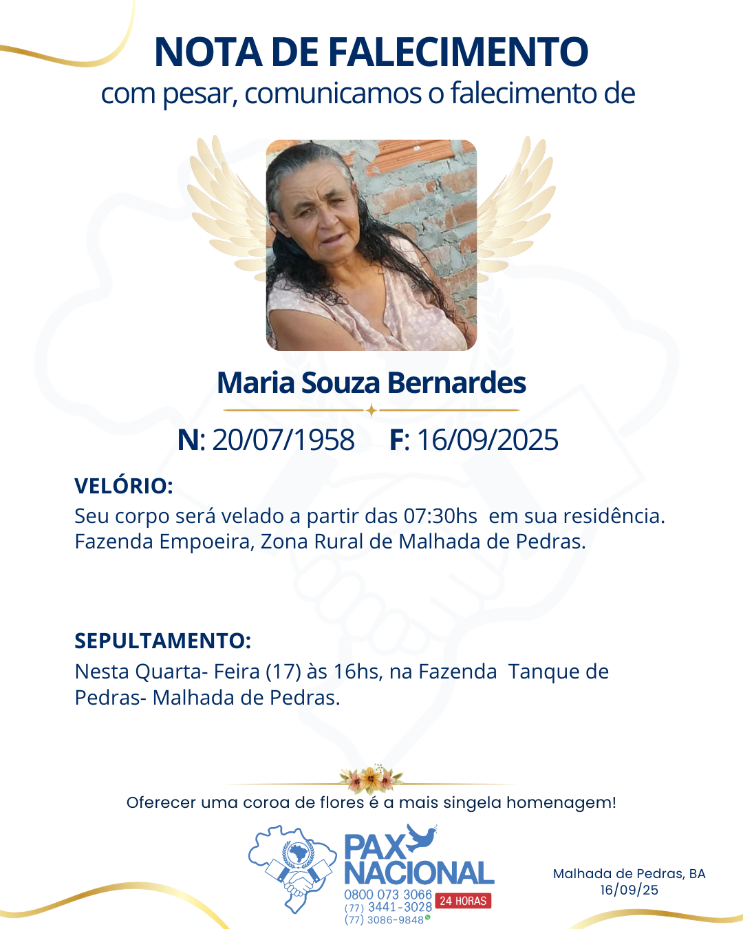 Deixe aqui a sua homenagem aos familiares deste óbito.