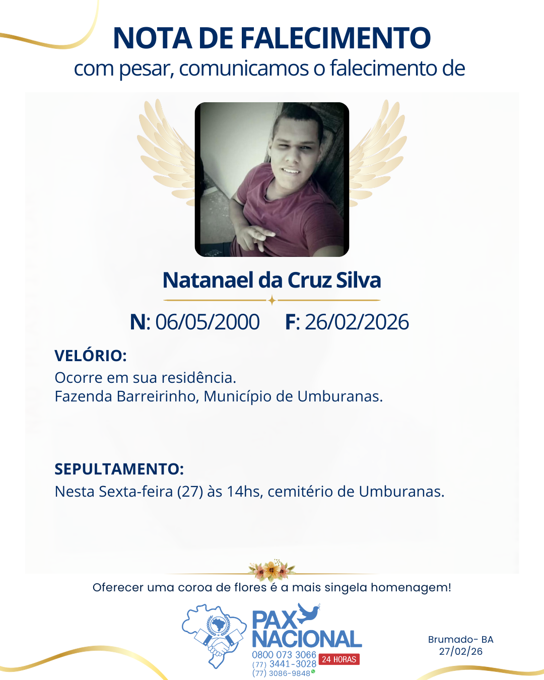 Deixe aqui a sua homenagem aos familiares deste óbito.