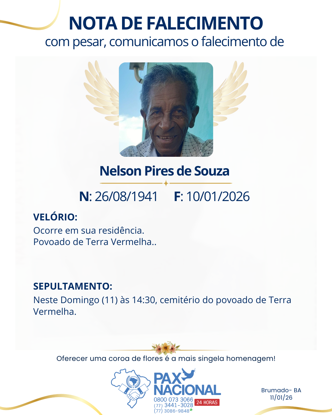 Com pesar, comunicamos o falecimento de