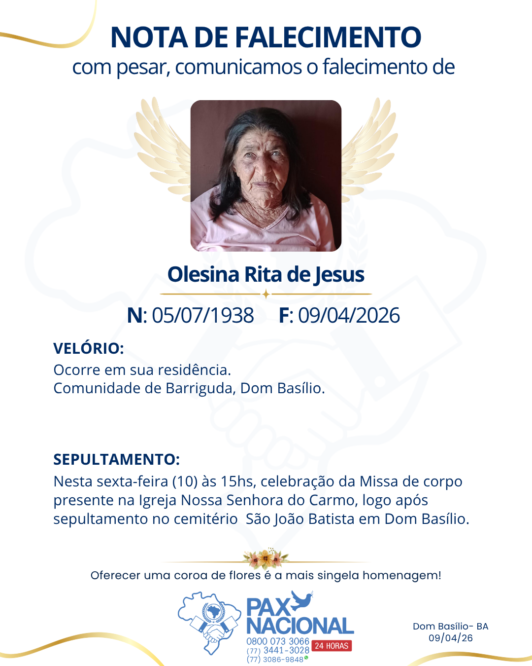 Deixe aqui a sua homenagem aos familiares deste óbito.