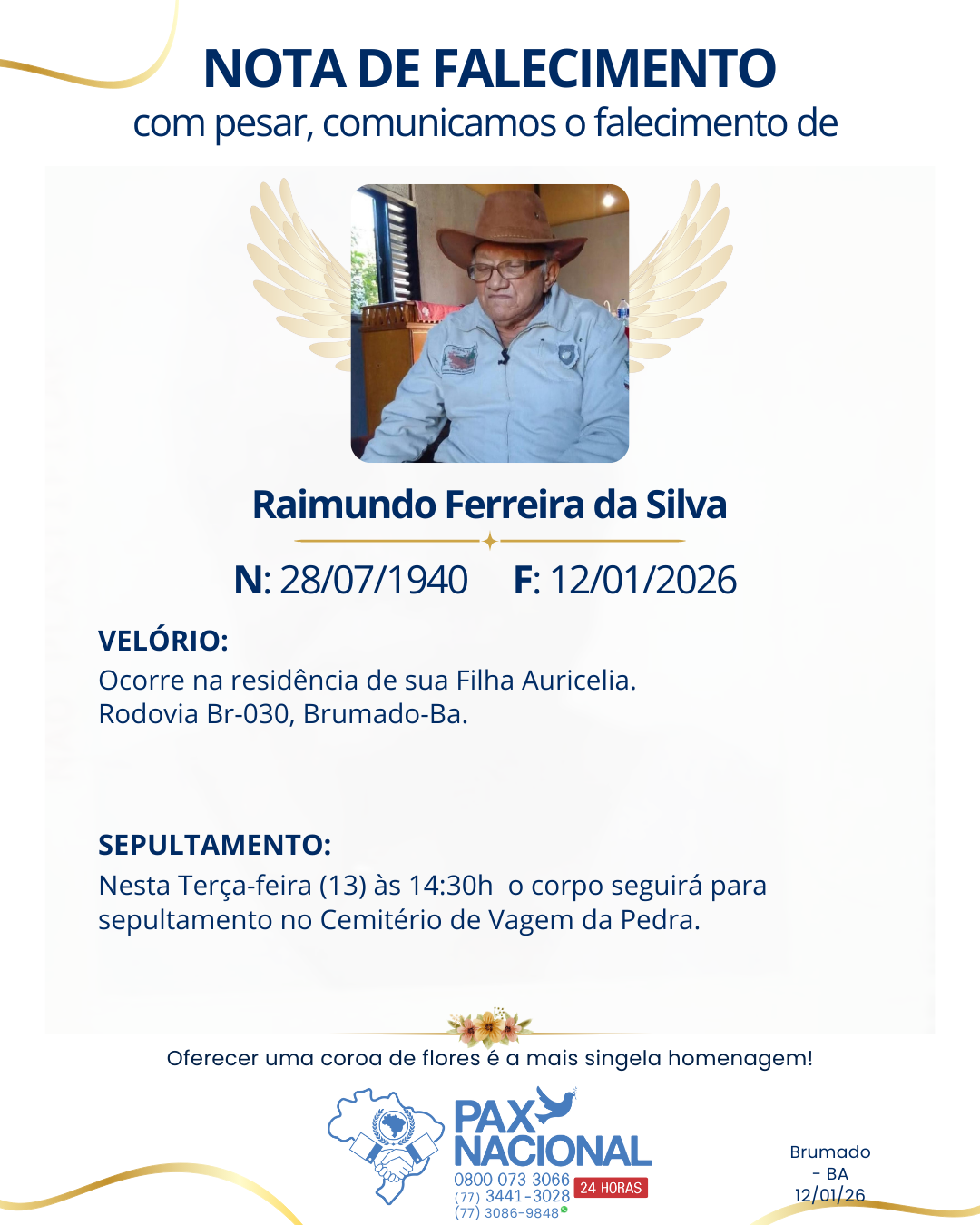Com pesar, comunicamos o falecimento de