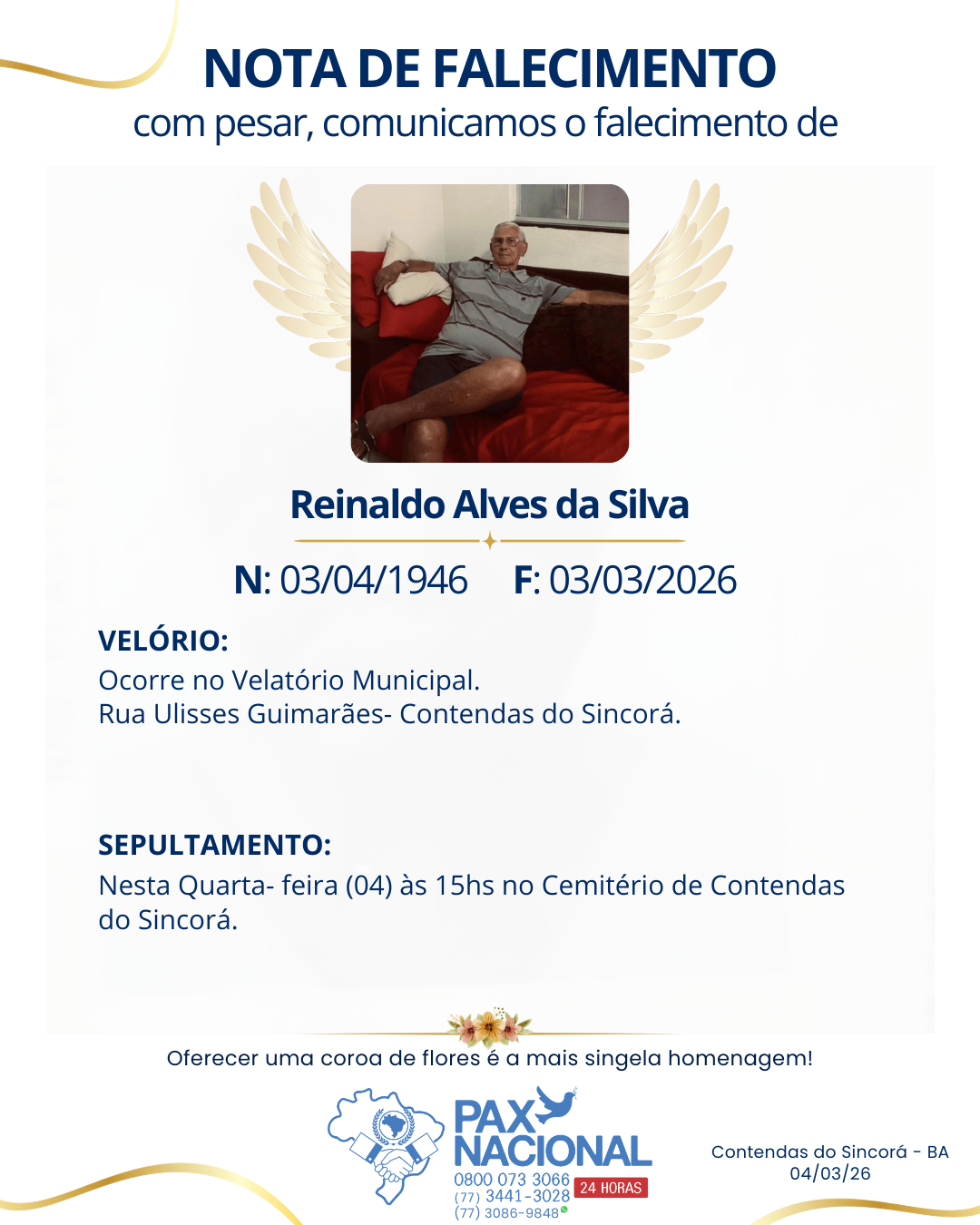 Deixe aqui a sua homenagem aos familiares deste óbito.