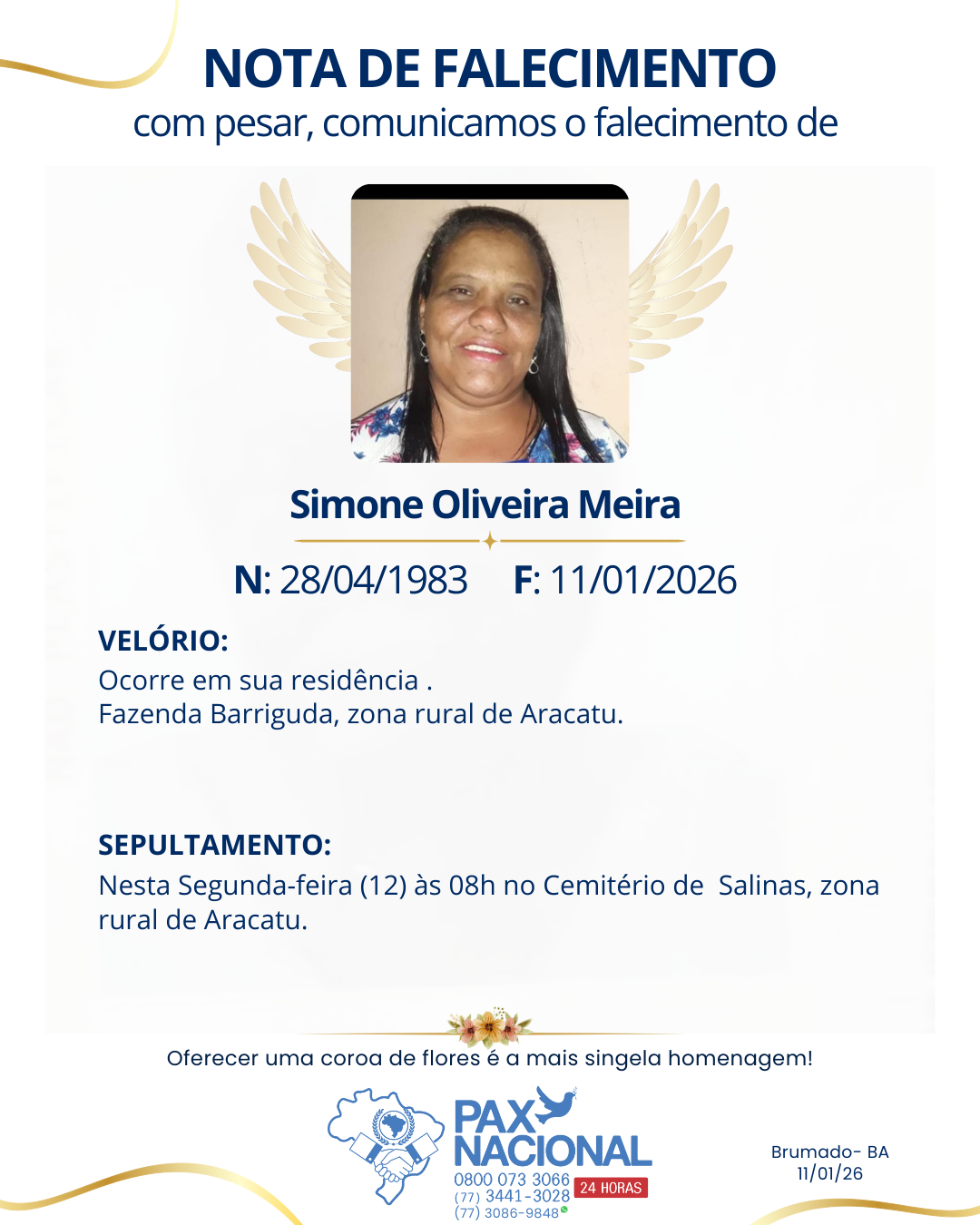 Deixe aqui a sua homenagem aos familiares deste óbito.