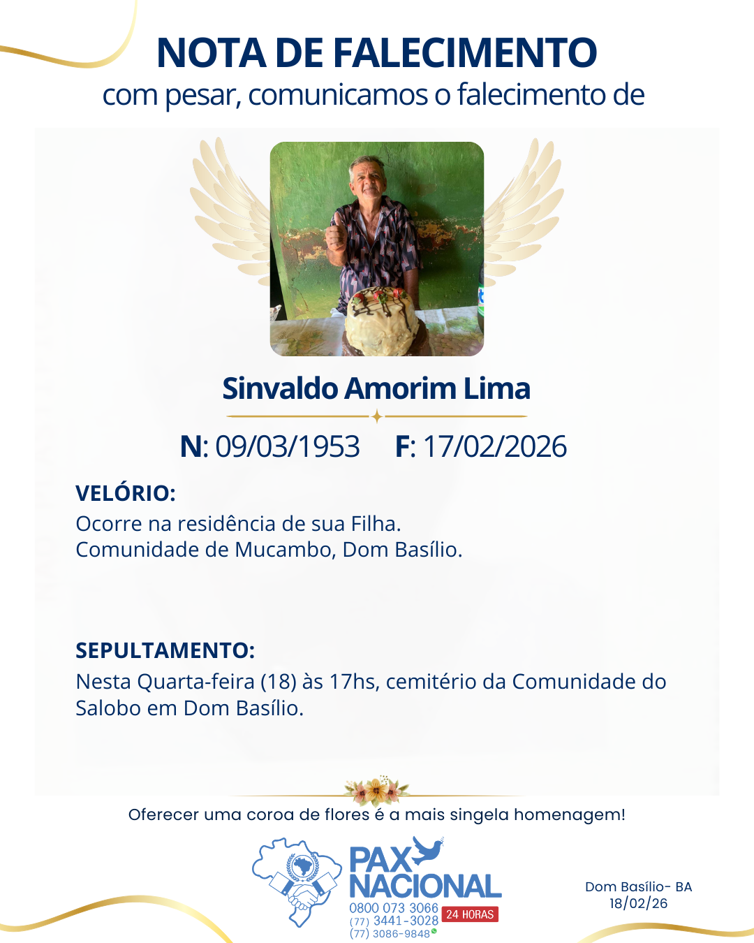 Deixe aqui a sua homenagem aos familiares deste óbito.