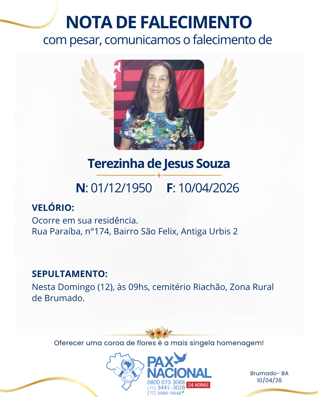 Deixe aqui a sua homenagem aos familiares deste óbito.
