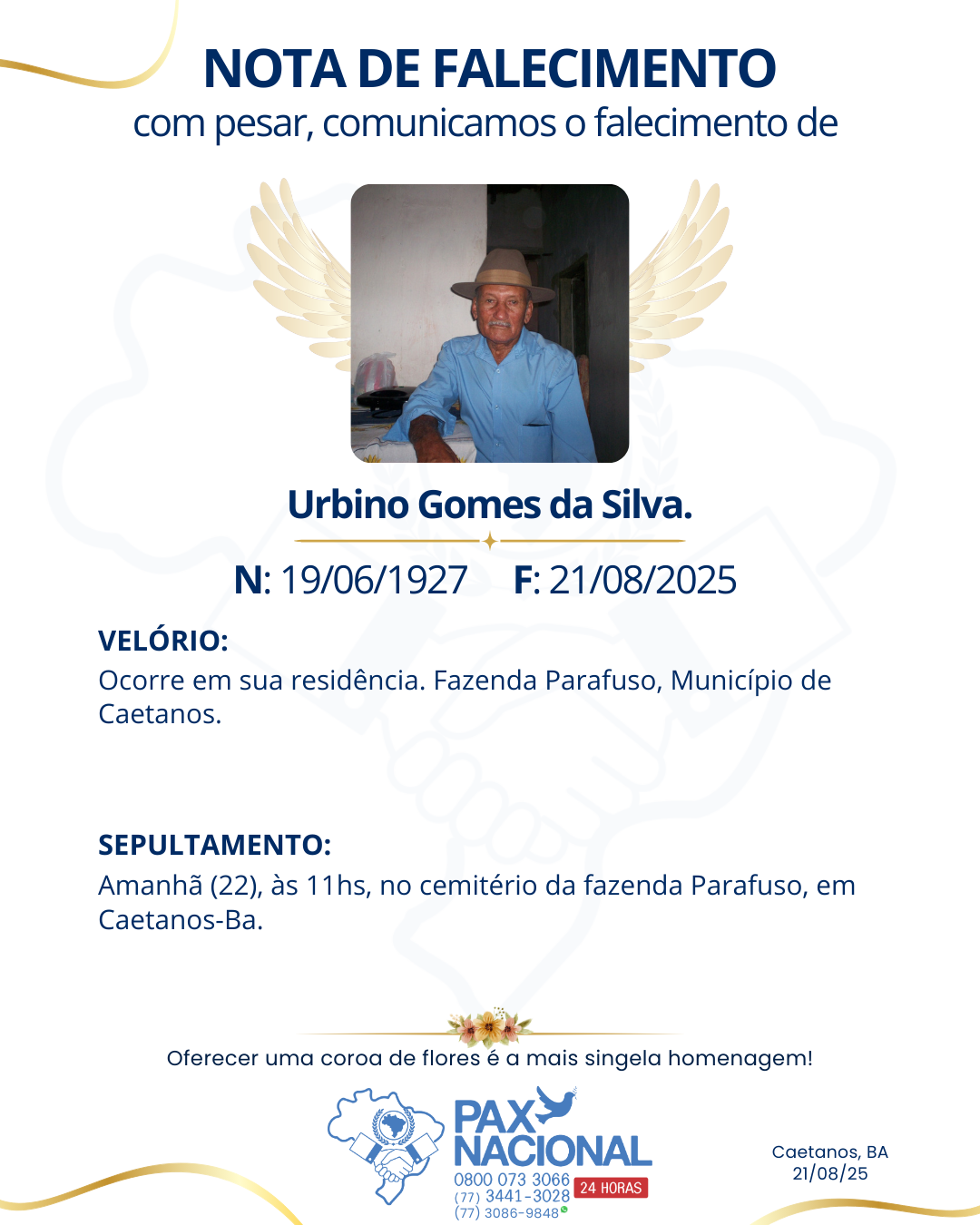 Deixe aqui a sua homenagem aos familiares deste óbito.
